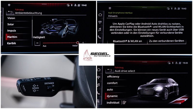 Ablage-Paket, Audi Smartphone Interface, Bedienelemente Glasoptik, inkl. erweiterter Aluminium-Optik, Business-Paket, Fahrassistenz-System: Spurwechselassistent (Side Assist) inkl. Audi pre sense rear, Fondsitzanlage (3 Sitzplätze), Fzg. ohne Audi Phone Box, Harnstofftank (SCR): 24 Ltr., HD Matrix-LED-Scheinwerfer, Innenausstattung: Dekoreinlagen Holz Eschemaser, braun naturell, Kombiinstrument digital (virtual cockpit plus), Kontur / Ambientebeleuchtungs-Paket (plus), Kopfstützen variabel verstellbar, Kraftstofftank: 73 Ltr., Lendenwirbelstützen vorn, elektr. verstellbar, LM-Felgen 8,5x19 (10-Speichen, Dynamik-Design), Sitzbezug / Polsterung: Leder / mono.pur 550 Kombination, Sonnenschutzrollo Heckscheibe elektr. und Seitenscheiben mech., Sound-System DSP / Audi Sound-System
