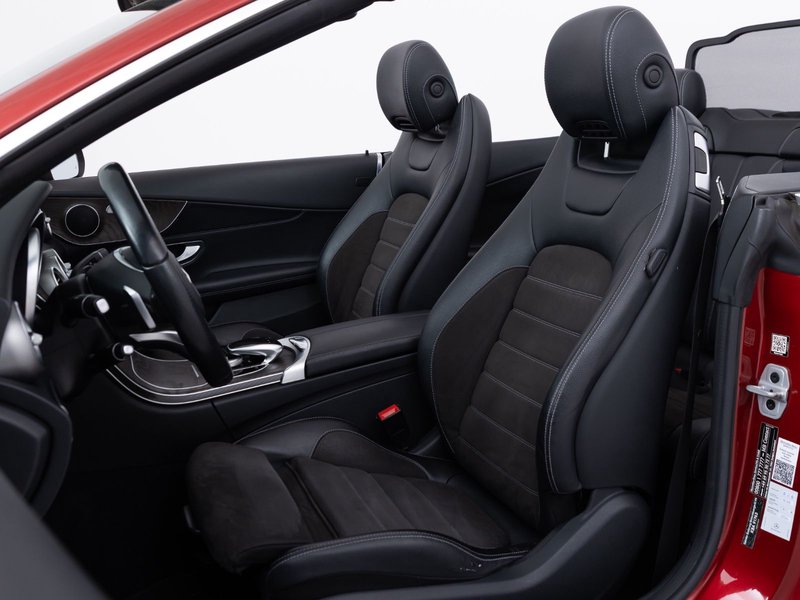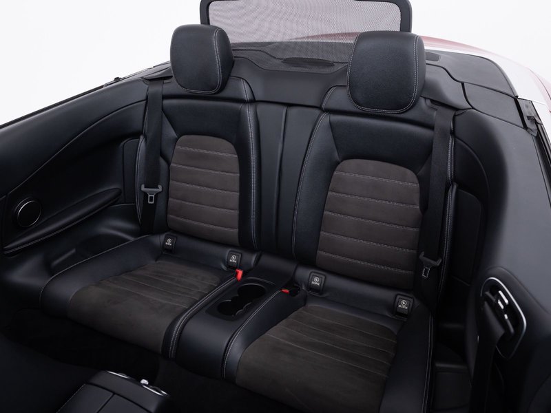 Ablage-Paket, Aircap, Akustik-Verdeck schwarz, AMG-Line Interieur, Audiosystem Audio 20 (mit Farbdisplay), Bereifung mit Notlaufsystem, Fahrassistenz-Paket Plus, Fahrassistenz-System: aktiver Park-Assistent, Fahrassistenz-System: Fernlichtassistent Adaptive plus, Infotainment-System: Remote Online, Innenausstattung: Edelholz Esche, Intelligent Light System LED, Keyless Go Startanlage, Komfort Direktlenkung, Kopfraumheizung (Airscarf), Kraftstofftank: vergrößert, LM-Felgen vorn/hinten: 7,5x19 / 8,5x19 (AMG, Vielspeichen schwarz, glanzgedreht), Park-Paket, Reifen-Reparaturset (Tirefit), Scheibenwaschanlage beheizt, Sitz-Komfort-Paket, Sitzheizung vorn, Sonderlackierung Metallic hyazinthrot (designo-Lack), Spiegel-Paket, Touchpad mit Drehknopf (Mittelkonsole), Vorbereitung Navigationssystem (Garmin MAP Pilot), Vorrüstung Mobiltelefon/Handy / Komfort-Telefonie / LTE-fähig