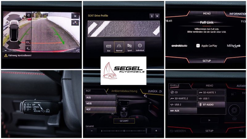 3. Bremsleuchte, Airbag Beifahrerseite abschaltbar, Airbag Fahrer-/Beifahrerseite, Ambiente-Beleuchtung LED, Antriebs-Schlupfregelung (ASR), Armaturentafel Leder-Optik, Außenspiegel Dachfarbe, Außentemperaturanzeige, Bordcomputer, Bremsassistent, Chromleisten an Seitenfenstern, Dachhimmel schwarz, Dachreling, Einschaltautomatik für Fahrlicht, Elektr. Bremskraftverteilung, Elektron. Querdifferentialsperre (XDS), Fahrassistenz-System: Berganfahr-Assistent (Hill-Holder), Fahrassistenz-System: Fahrprofilauswahl (SEAT Drive Profile), Fahrassistenz-System: Multikollisionsbremse (Multi Collision Brake), Fahrassistenz-System: Umfeldbeobachtungssystem (Front assist) mit City-Notbremsfunktion, Gepäckraumabdeckung / Rollo, Heckleuchten LED, Heckscheibe heizbar, Heckscheibenwischer, Innenausstattung: Chrom-Applikationen, Innenraumfilter: Pollenfilter, Isofix-Aufnahmen für Kindersitz, Karosserie: 5-türig, Klima-Komfort-Paket, Kofferraumbeleuchtung, Kombiinstrument digital (8 Zoll), Kopf-Airbag-System, Kopfstützen hinten, Kopfstützen vorn, Lenkrad (Leder) mit Multifunktion, Lenksäule (Lenkrad) höhenverstellbar, Lenksäule (Lenkrad) verstellbar, Motor 1,5 Ltr. - 110 kW 16V TSI ACT, Radstand 2566 mm, Reifendruck-Kontrollsystem, Reifenkontroll-Anzeige, Rücksitzlehne geteilt/klappbar (1/3-2/3), Schadstoffarm nach Abgasnorm Euro 6, Seitenairbag, Sitze vorn höhenverstellbar, Sportsitze vorn, Sprachsteuerungs-System, Start/Stop-Anlage, Steckdose (12V-Anschluß) vorn, Stoßfänger FR-Design, Türgriffe außen lackiert, Wärmeschutzverglasung