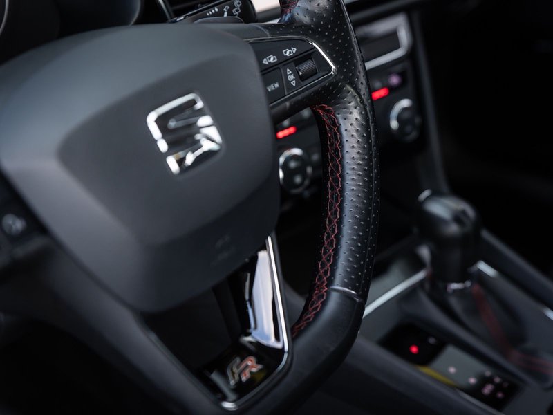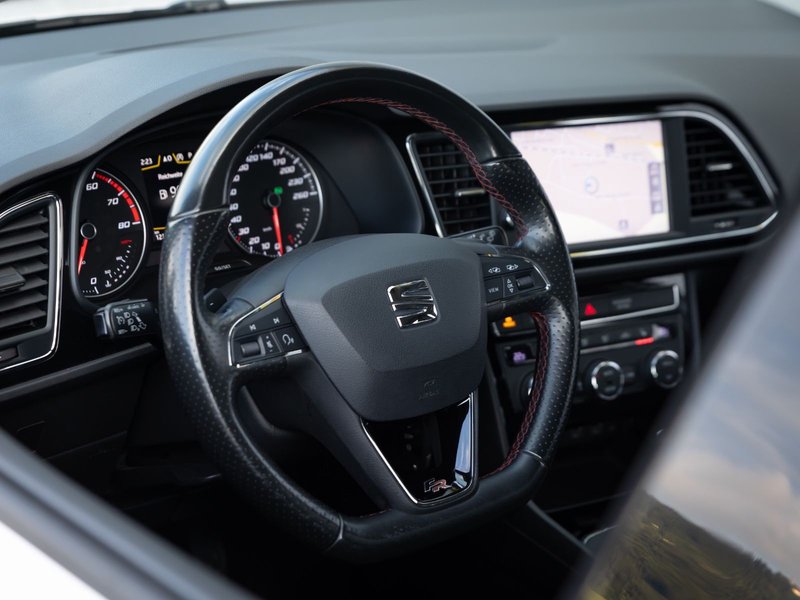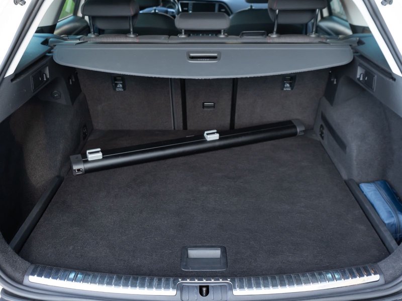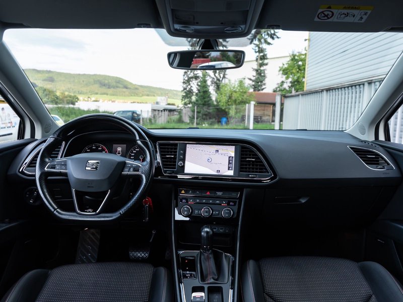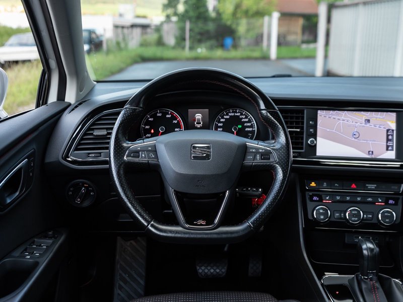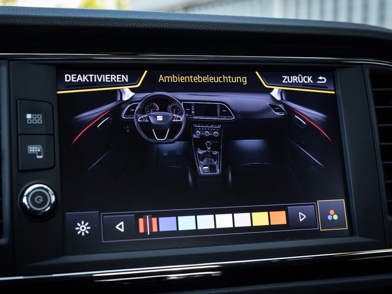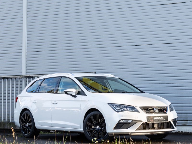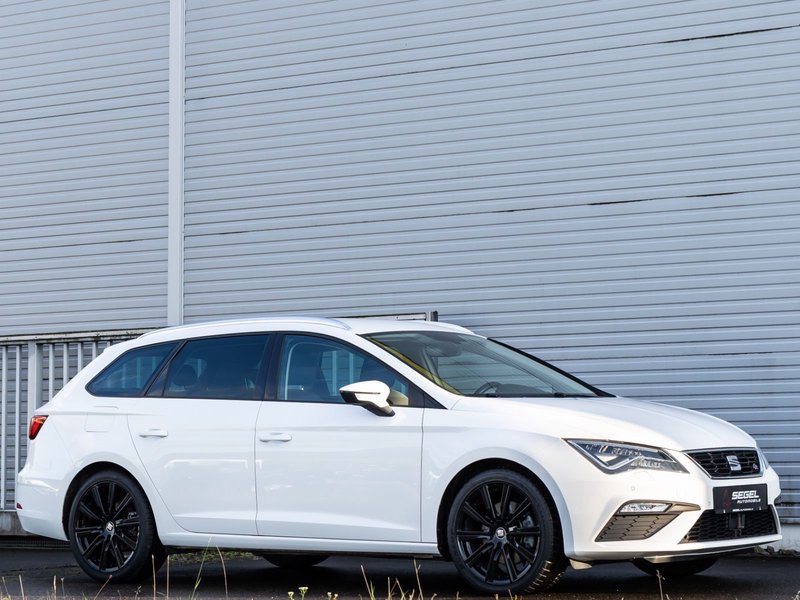 3. Bremsleuchte, Ablage-Paket, Ablagetasche an Vordersitzlehnen, Airbag Beifahrerseite abschaltbar, Airbag Fahrer-/Beifahrerseite, Ambiente-Beleuchtung LED, Antriebs-Schlupfregelung (ASR), AUX-IN-Anschluss und 2 x USB-Anschluss, Außenspiegel elektr. verstell-, heiz- und anklappbar, beide, Außenspiegel und Türgriffe außen in Wagenfarbe, Außentemperaturanzeige, Blinkleuchten LED in Außenspiegel integriert, Bordcomputer, Bremsassistent, Dachreling silber, Elektron. Differentialsperre (EDS), Fahrassistenz-System: Berganfahr-Assistent (Hill-Holder), Fahrassistenz-System: Berganfahr-Assistent und Elektron. Differentialsperre, Fahrassistenz-System: Fahrprofilauswahl (SEAT Drive Profile), Fensterheber elektrisch hinten, Gepäckraumabdeckung / Rollo, Handschuhfach beleuchtet, Heckleuchten LED, Innenausstattung: Chrom-Applikationen, Isofix-Aufnahmen für Kindersitz, Karosserie: 5-türig, Klimaanlage Climatronic 2-Zonen, Knieairbag Fahrerseite, Kofferraumbeleuchtung, Kopf-Airbag-System, Kopfstützen hinten (3-fach), Kopfstützen vorn verstellbar, Laderaumboden variabel und herausnehmbar, Lendenwirbelstütze Sitz vorn links, verstellbar, Lendenwirbelstütze Sitz vorn rechts, verstellbar, Lenkrad (Sport/Leder), LM-Felgen, Mittelarmlehne hinten, Modellpflege, Motor 1,8 Ltr. - 132 kW 16V TSI, Parkbremse elektrisch, Reifenkontroll-Anzeige, Rücksitzlehne geteilt/klappbar (1/3-2/3), Rücksitzlehnen umklappbar mit Fernentriegelung im Kofferraum, Schadstoffarm nach Abgasnorm Euro 6, Schalt-/Wählhebelgriff Leder, Seitenairbag, Seitenscheiben hinten und Heckscheibe abgedunkelt, Sitz vorn links höhenverstellbar, Sitz vorn rechts höhenverstellbar, Sonnenblende links mit Spiegel (beleuchtet), Sonnenblende rechts mit Spiegel (beleuchtet), Sport-Fahrwerk FR / Cupra, Sportsitze vorn, Sprachsteuerungs-System, Start/Stop-Anlage, Stau-/Ablagefach unter Sitze vorn, Steckdose (12V-Anschluß) im Koffer-/Laderaum, Steckdose (12V-Anschluß) vorn, Stoßfänger lackiert, Wärmeschutzverglasung