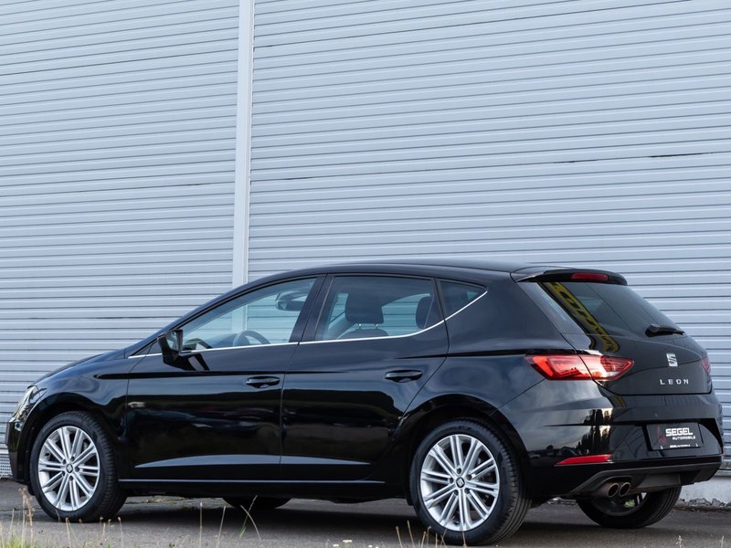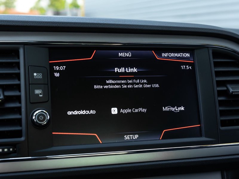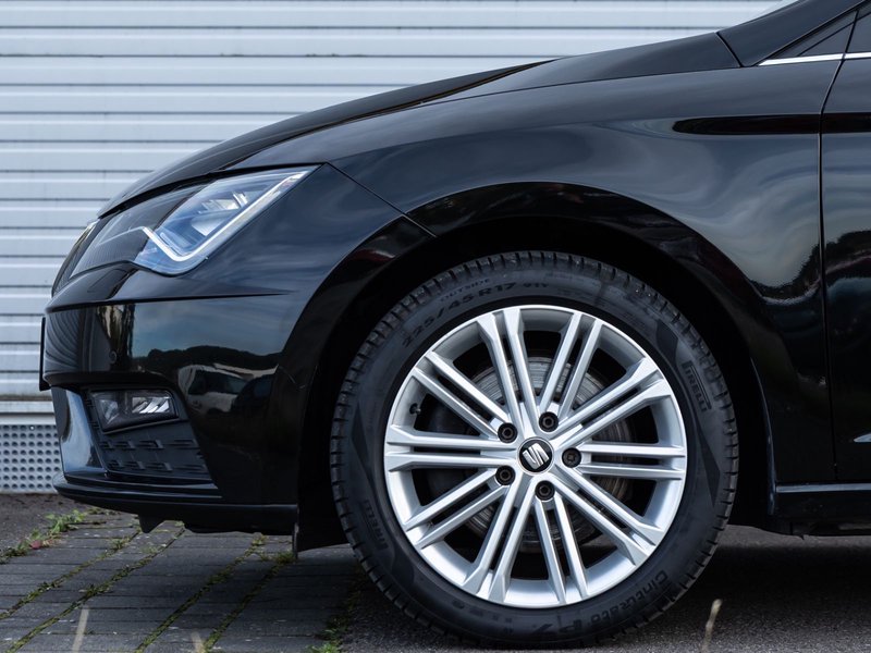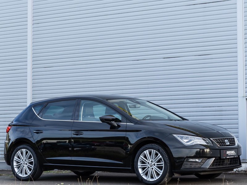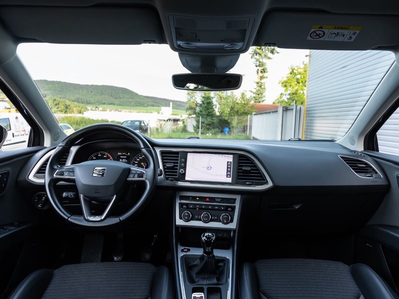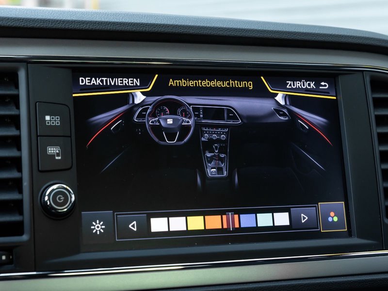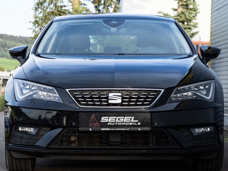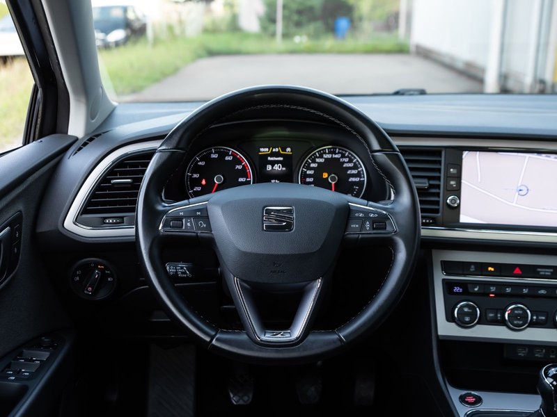 Ablagetasche an Vordersitzlehnen, Airbag Beifahrerseite abschaltbar, Airbag Fahrer-/Beifahrerseite, Antriebs-Schlupfregelung (ASR), AUX-IN-Anschluss und 2 x USB-Anschluss, Außenspiegel elektr. verstell- und heizbar, beide, Außenspiegel und Türgriffe außen in Wagenfarbe, Außentemperaturanzeige, Blinkleuchten LED in Außenspiegel integriert, Bordcomputer, Bremsassistent, Chromleisten an Seitenfenstern, Elektron. Differentialsperre (EDS), Fahrassistenz-System: Berganfahr-Assistent (Hill-Holder), Fahrassistenz-System: Berganfahr-Assistent und Elektron. Differentialsperre, Fahrassistenz-System: Umfeldbeobachtungssystem (Front assist) mit City-Notbremsfunktion, Fensterheber elektrisch hinten, Handschuhfach beleuchtet, Innenausstattung: Chrom-Applikationen, Isofix-Aufnahmen für Kindersitz, Karosserie: 5-türig, Knieairbag Fahrerseite, Kopf-Airbag-System, Kopfstützen hinten (3-fach), Kopfstützen vorn verstellbar, Lendenwirbelstütze Sitz vorn links, verstellbar, Lenkrad (Sport/Leder), LM-Felgen, Mittelkonsole vorn mit Mittelarmlehne, Becherhalter, Ablagebox und Luftausströmer hinten, Modellpflege, Motor 1,8 Ltr. - 132 kW 16V TSI, Parkbremse elektrisch, Reifenkontroll-Anzeige, Rücksitzlehne geteilt/klappbar (1/3-2/3), Schadstoffarm nach Abgasnorm Euro 6, Schalt-/Wählhebelgriff Leder, SEAT Media-System Plus, Seitenairbag, Seitenscheiben hinten und Heckscheibe abgedunkelt, Sitz vorn links höhenverstellbar, Sitz vorn rechts höhenverstellbar, Sonnenblende links mit Spiegel (beleuchtet), Sonnenblende rechts mit Spiegel (beleuchtet), Start/Stop-Anlage, Startanlage Keyless Access, Stau-/Ablagefach unter Sitze vorn, Steckdose (12V-Anschluß) vorn, Stoßfänger lackiert, Wärmeschutzverglasung